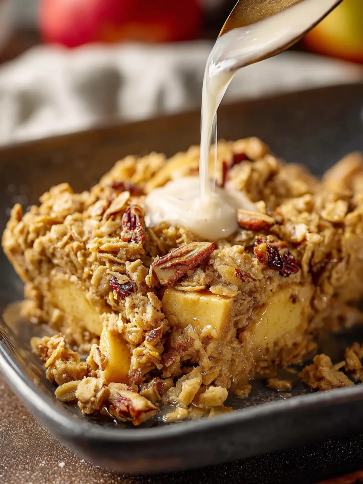 Drizzling your baked apple oatmeal with Greek yogurt over the top not only adds creaminess but also a refreshing contrast to the sweet and spiced base. A sprinkle of cinnamon or a drizzle of honey can take it to the next level.