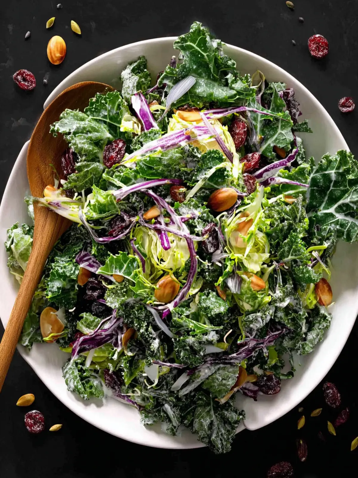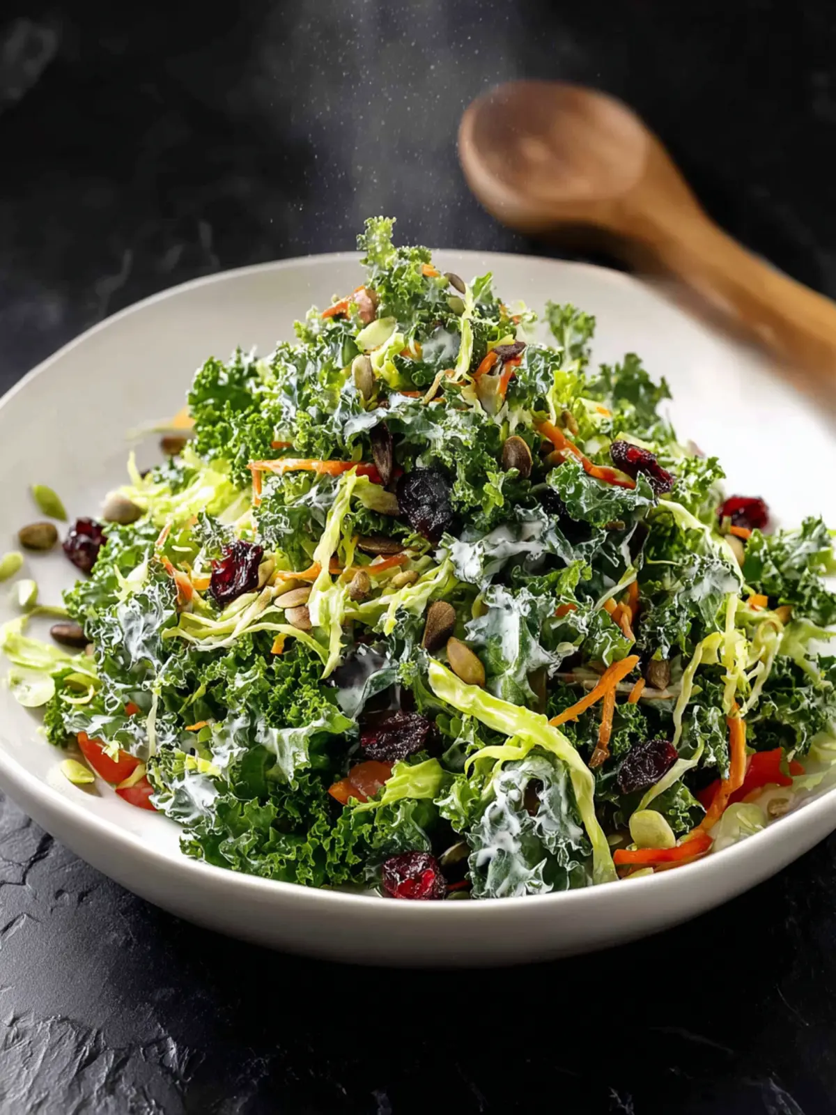 Kale’s deep green leaves are rich in vitamins A, C, and K, making them the perfect foundation for this colorful creation. However, it is the harmonious blend of sweet toppings and tangy dressings that elevate this salad from ordinary to extraordinary. You might even find it hard to believe such a mouthwatering dish can be so good for you!