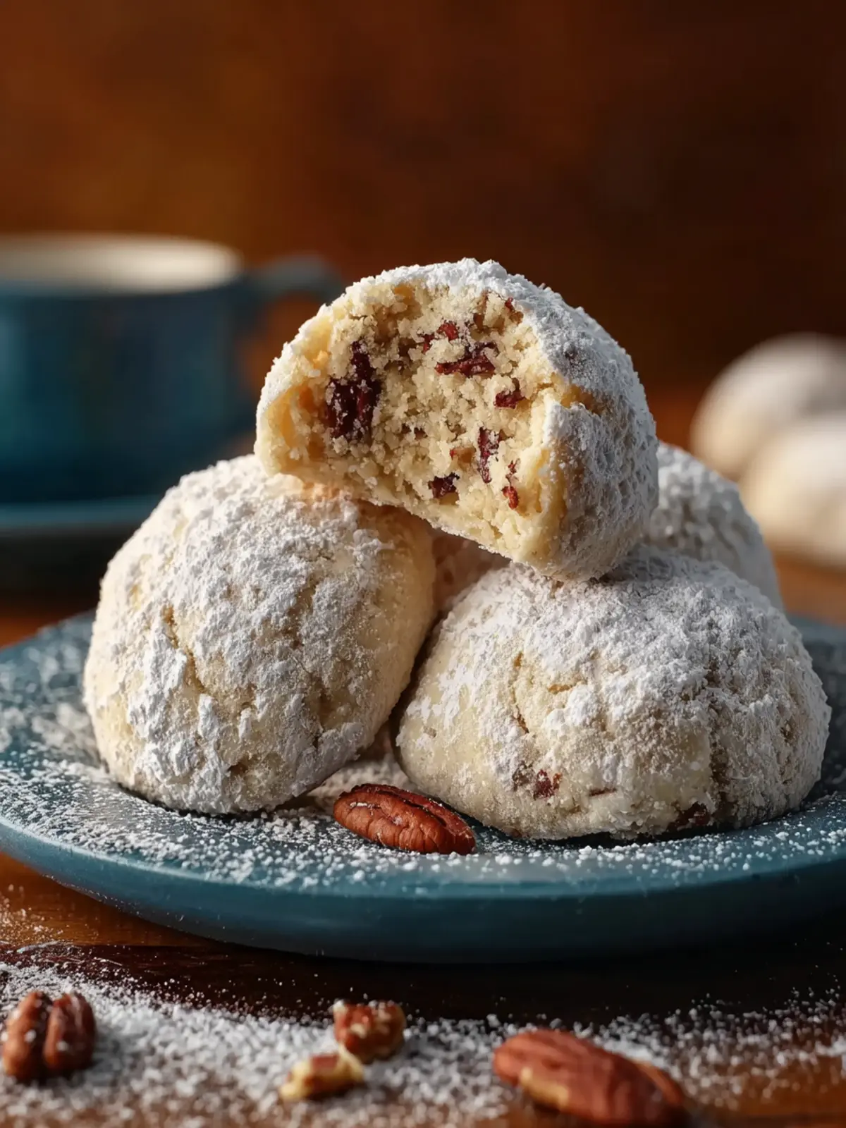 - Double Roll in Sugar: Let the cookies cool for about 5 minutes, then roll them in powdered sugar while still warm. Let them cool completely, then roll a second time for that perfect snowy finish.