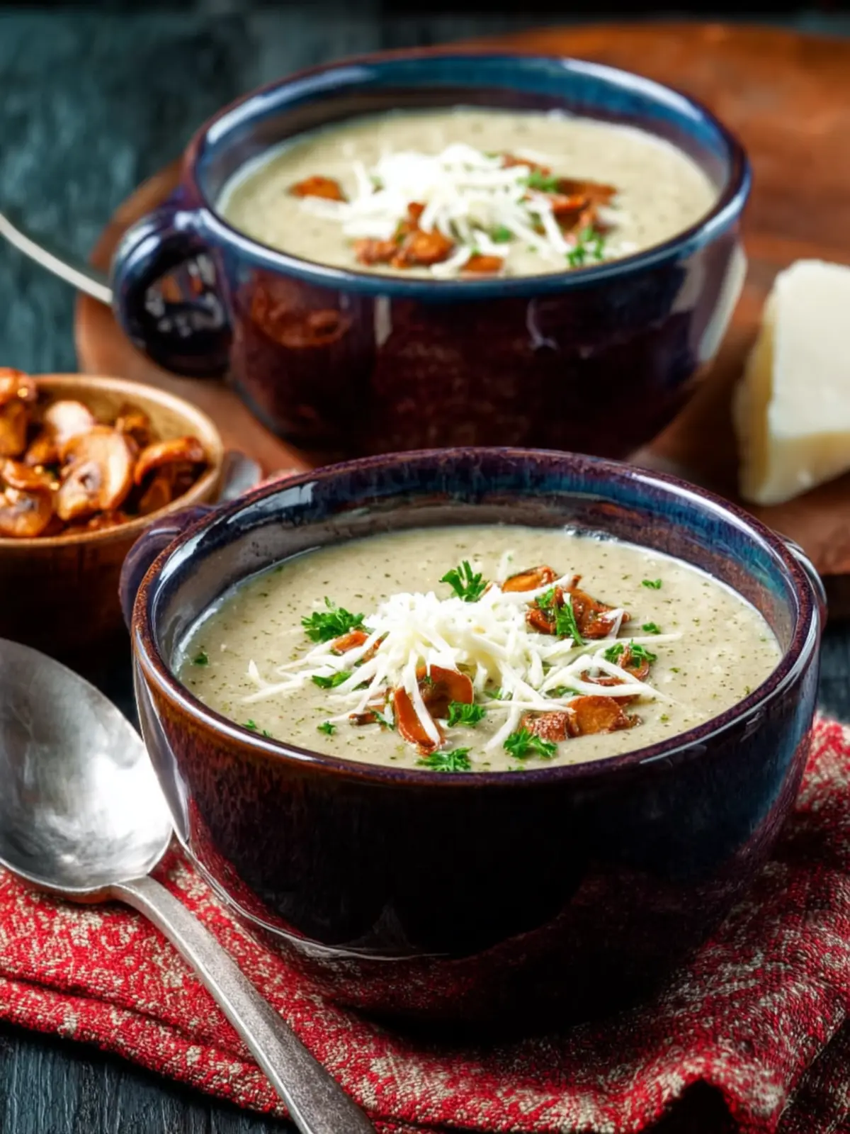 14. Serve Cauliflower Mushroom Soup hot, with more freshly-grated Parmesan cheese to add at the table.