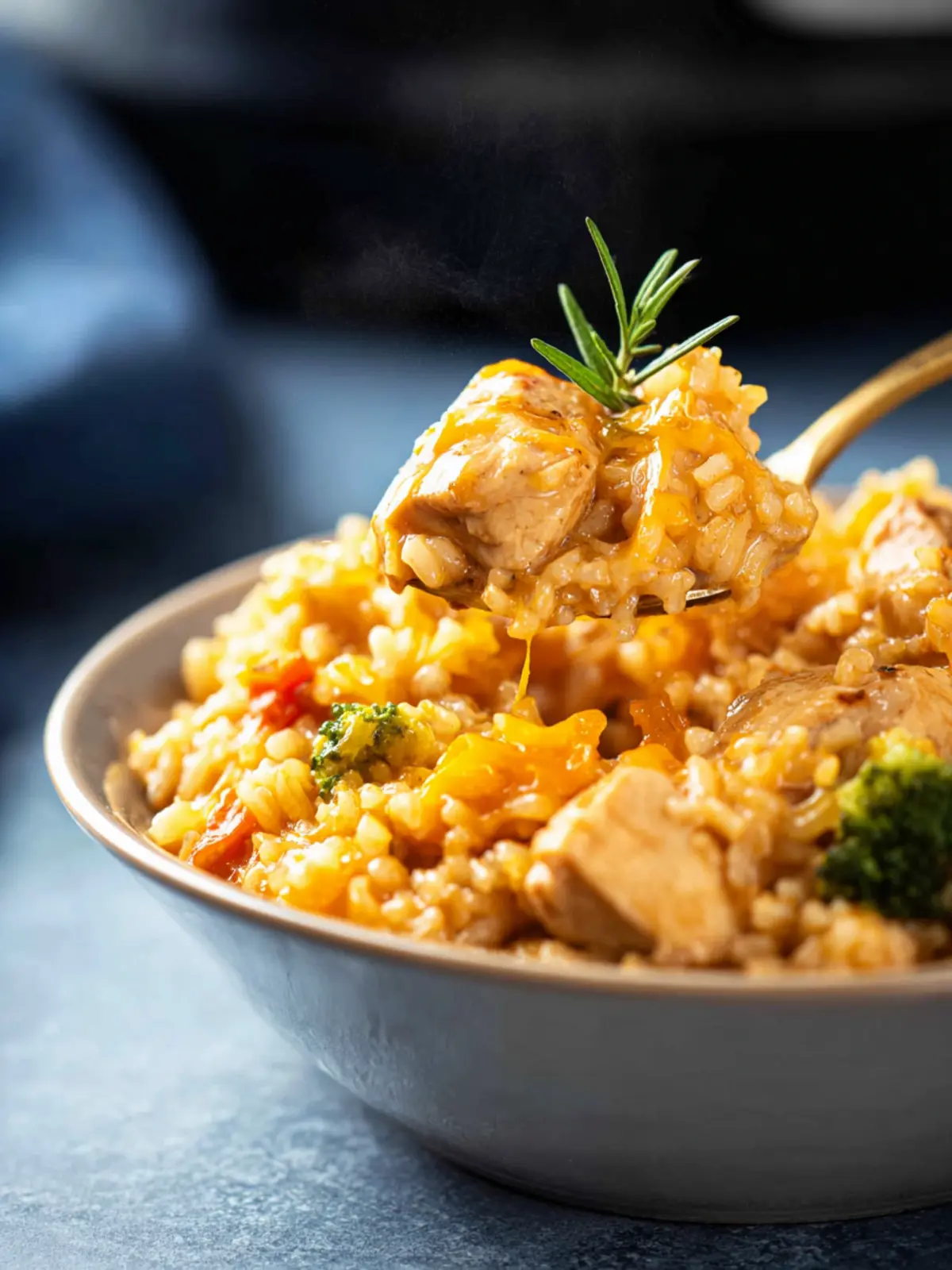Quick Stir for a Creamy Finish: Once your dish is done, give it a quick stir to mix in the melted cheese and ensure an even coating over the chicken and rice. This makes every bite a delightful experience!
