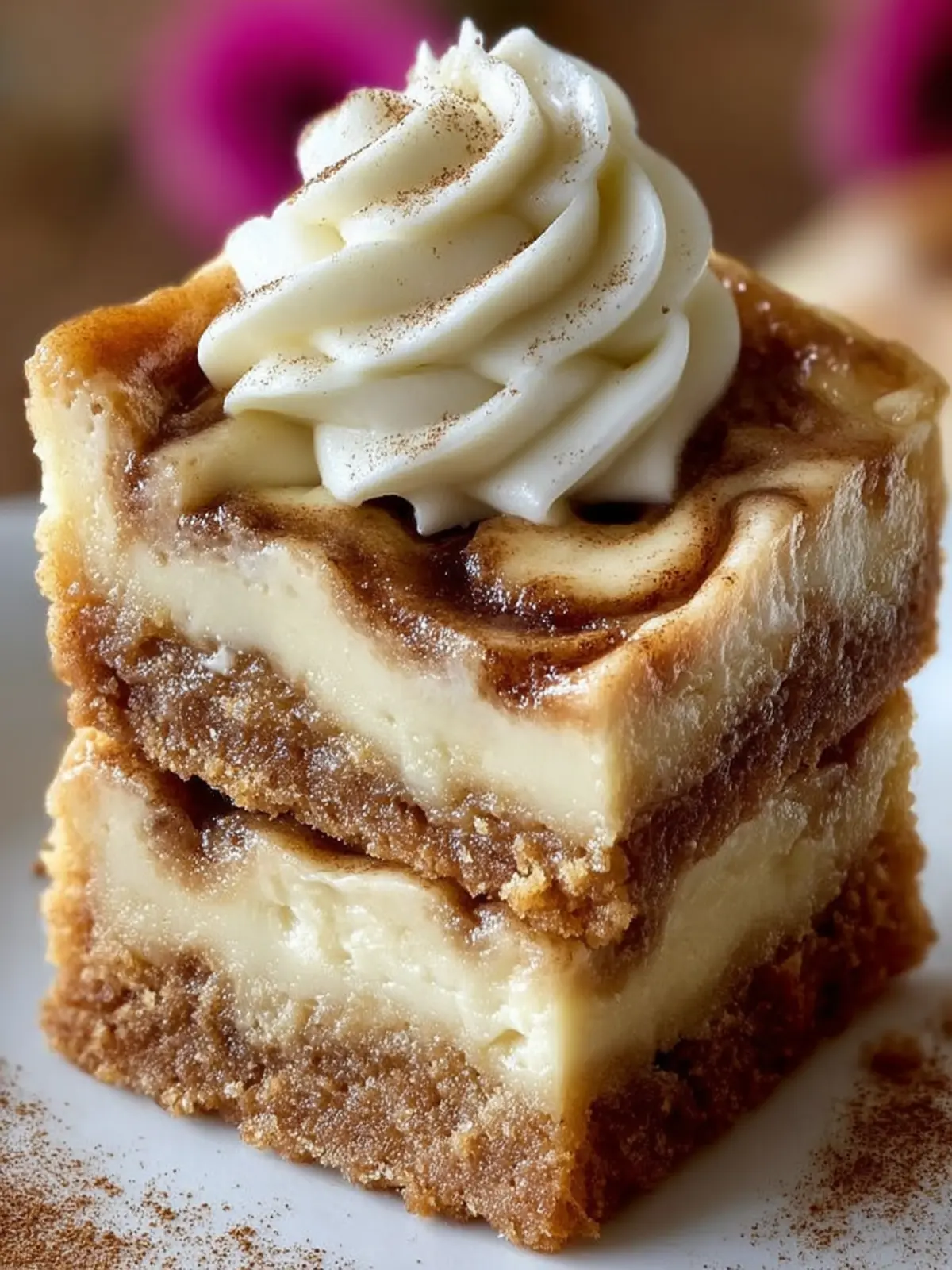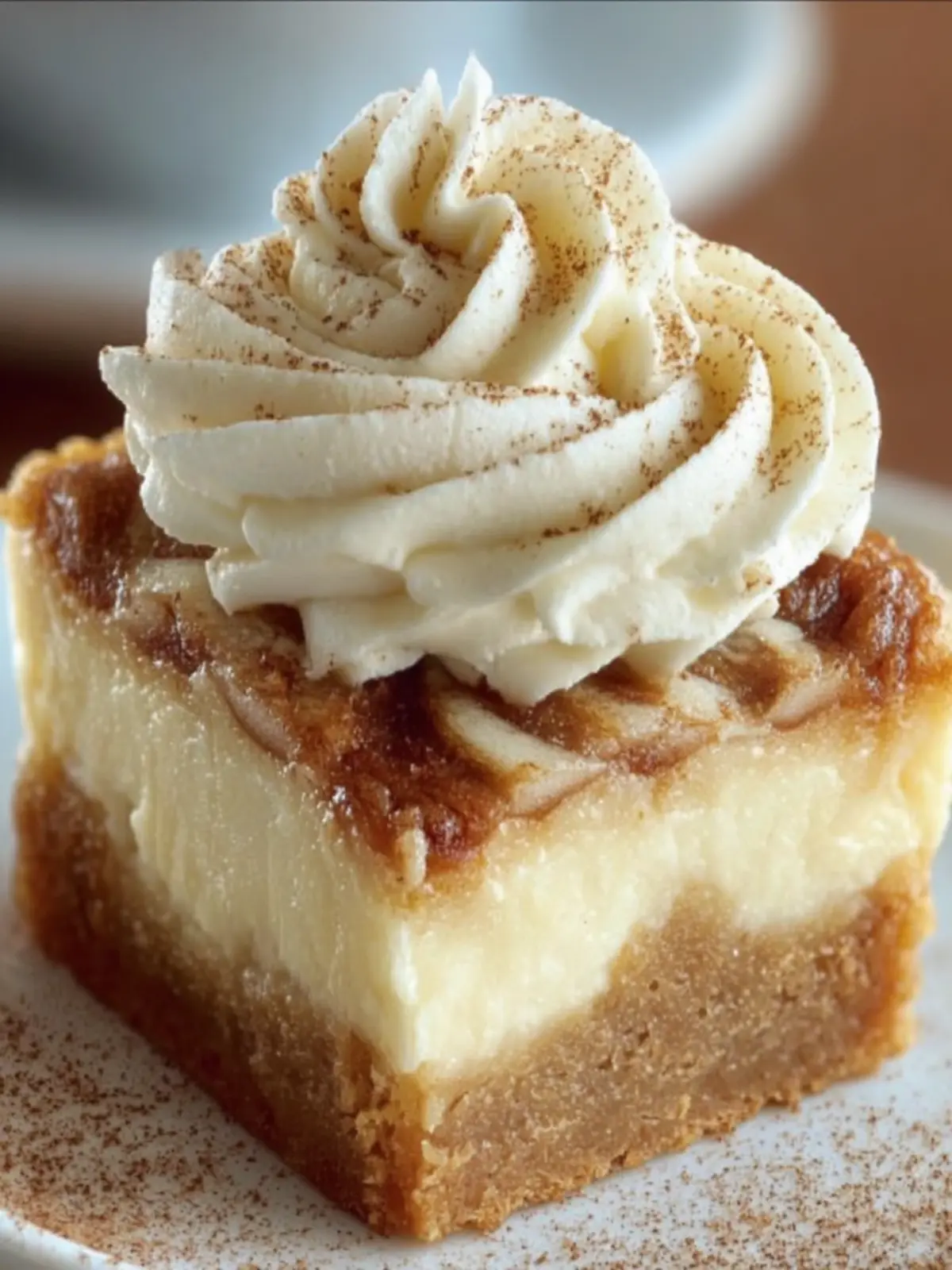 5. Assemble: Once the blondies are cool, spread the frosting evenly over the top. Optionally, dust with additional cinnamon for decoration.