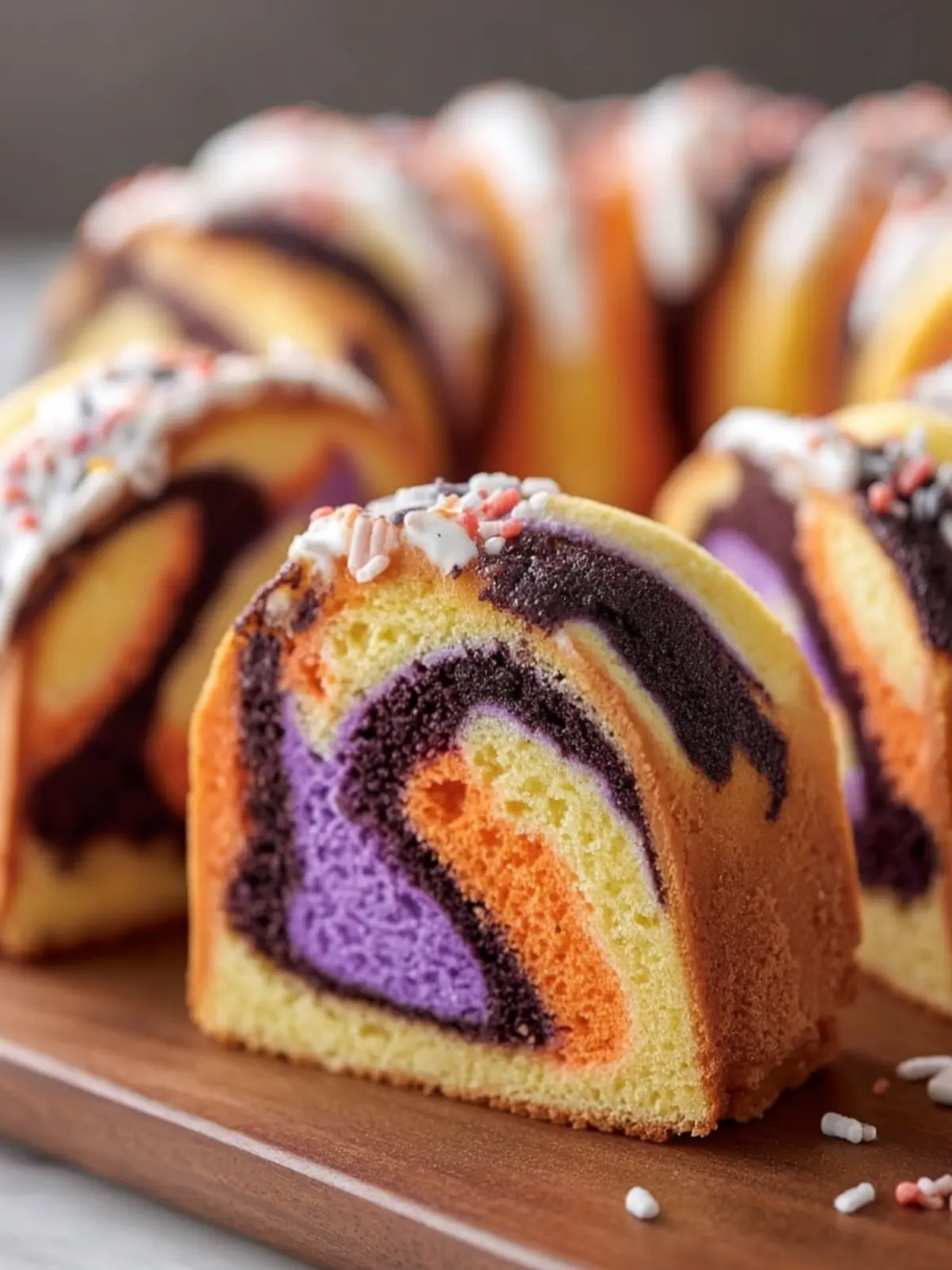 What could be more inviting than a dessert that looks as captivating as it tastes? It’s perfect for sharing stories over coffee or as a centerpiece for a fun Halloween celebration. Plus, the ease of making this cake means you can whip it up with friends or even get the kids involved in layering the colorful batters.