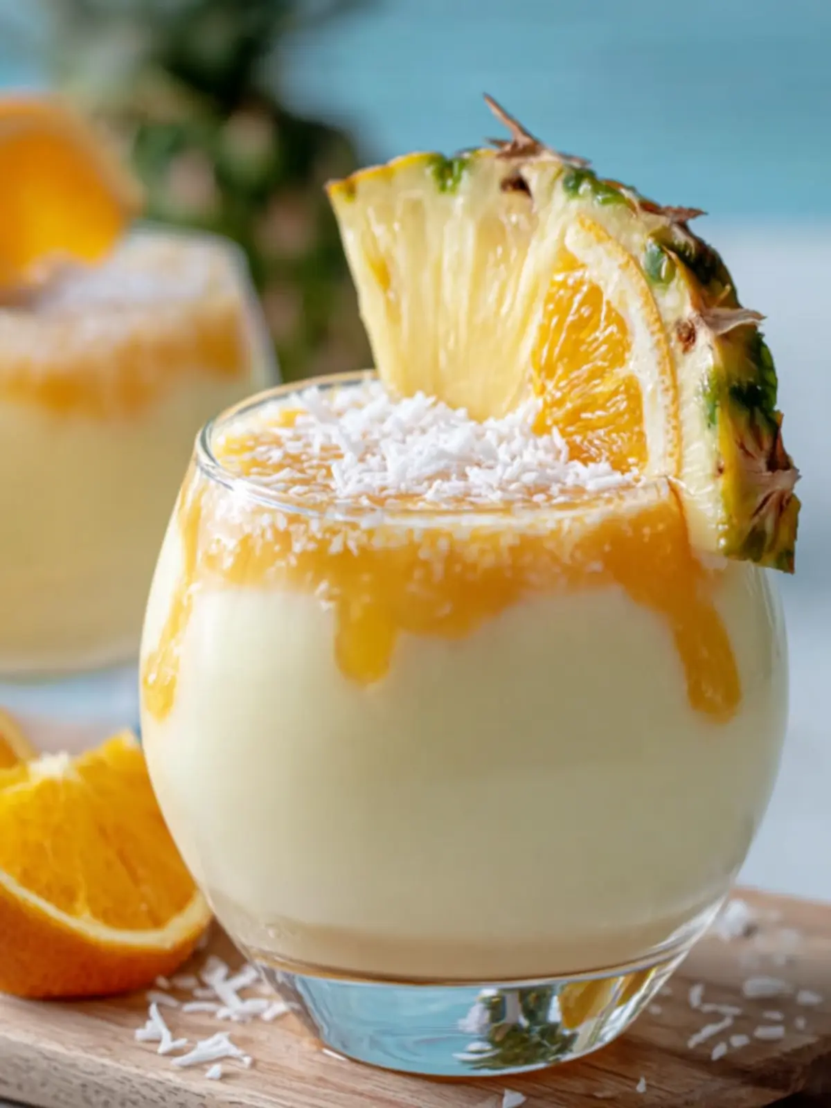- Garnish: Before serving, garnish with orange slices and shredded coconut.