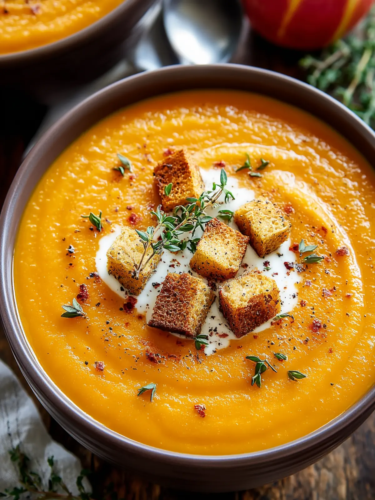 A warm and creamy pumpkin apple soup, perfect for fall.