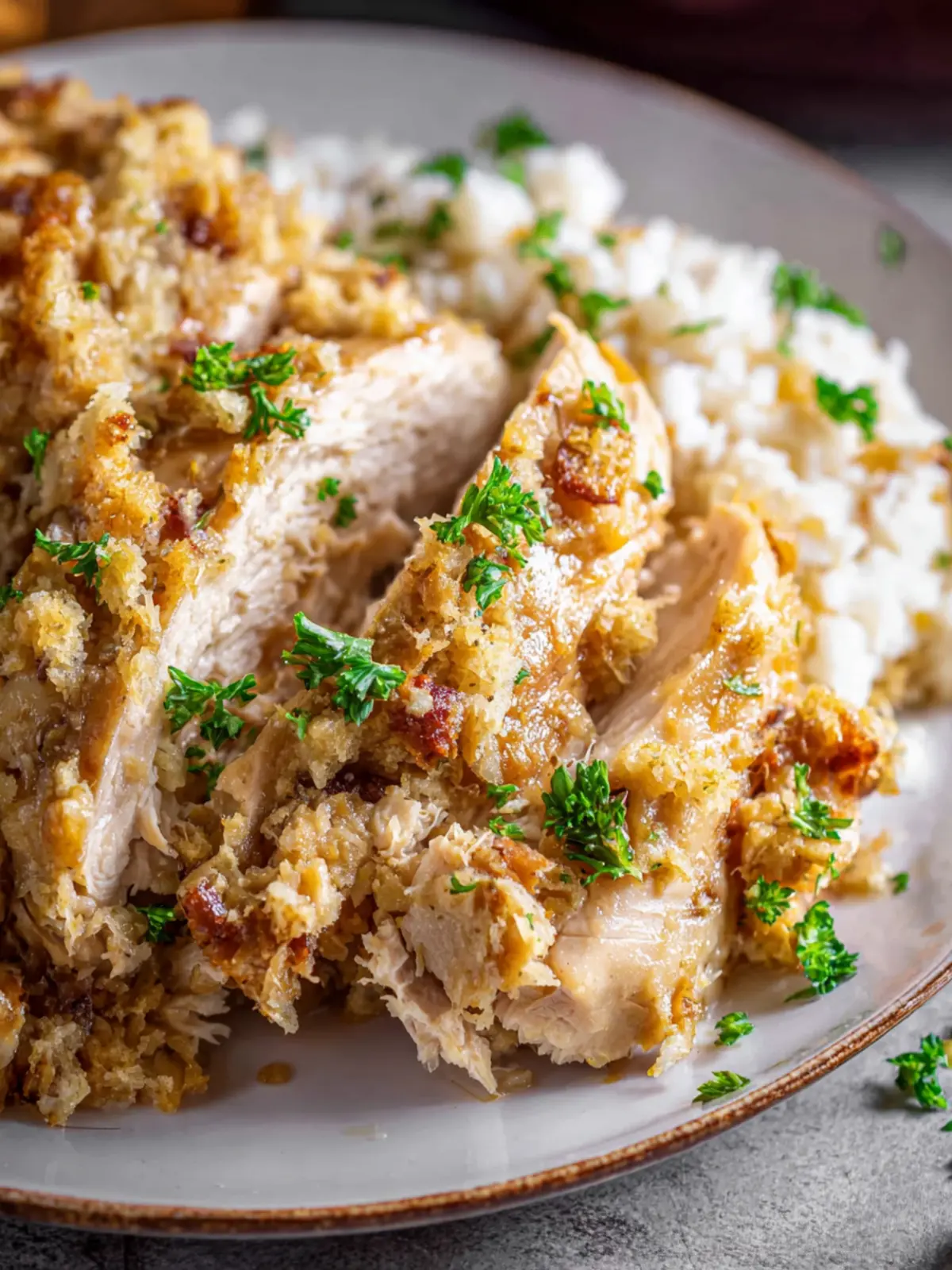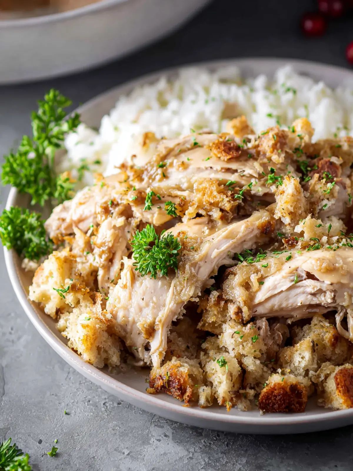Vegetables: Common additions like diced onions and celery bring a crunch and aromatic flavor. These veggies soften during cooking, enhancing the overall taste of the Crockpot Chicken and Stuffing.