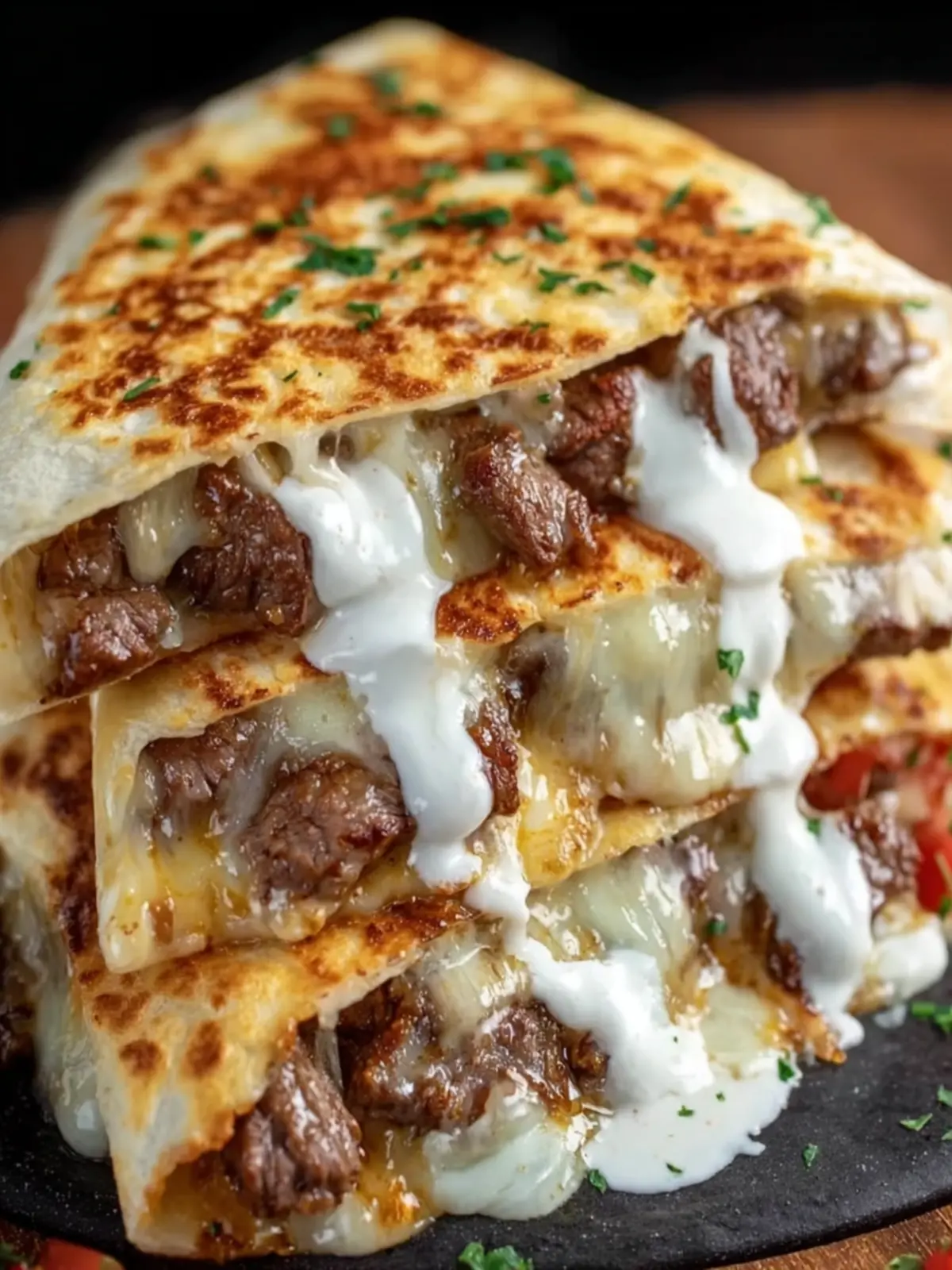 A savory beef quesadilla recipe that combines tender beef, cheese, and fresh vegetables for a delicious meal.