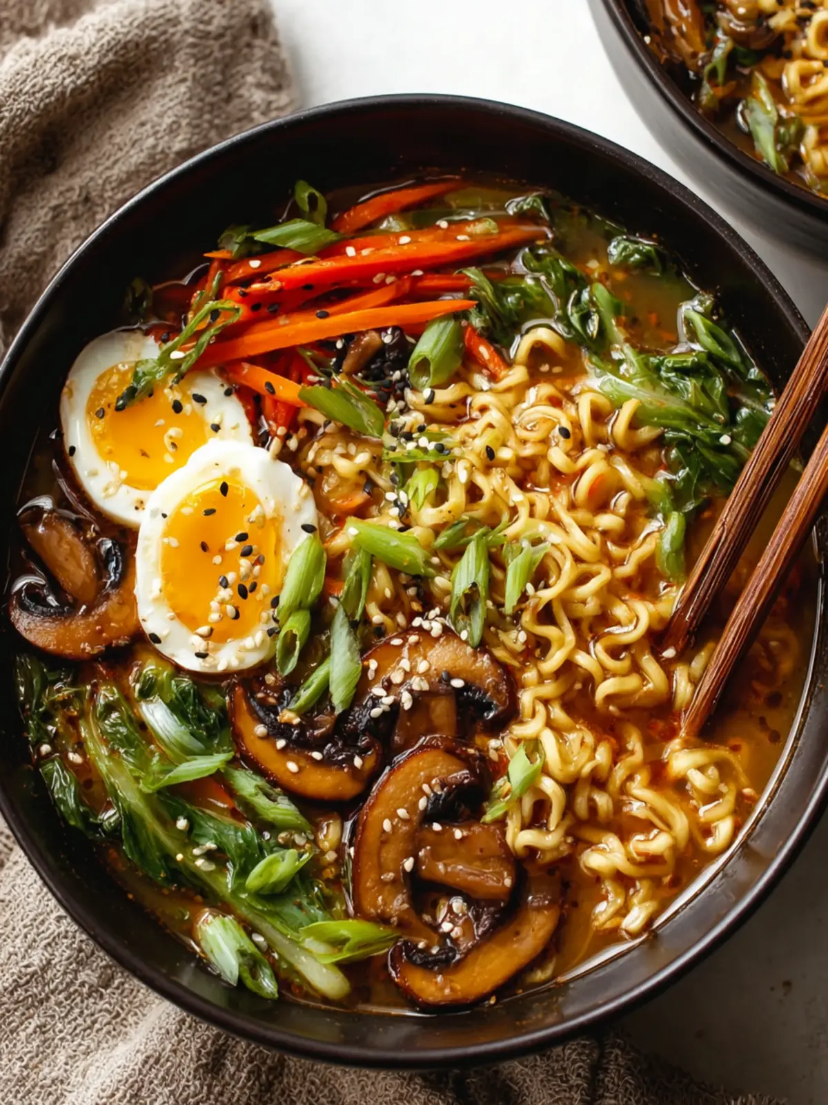Vegetable Broth: A homemade broth packs more flavor than store-bought versions. Simmering fresh aromatics like garlic, ginger, and green onions can really elevate your ramen.