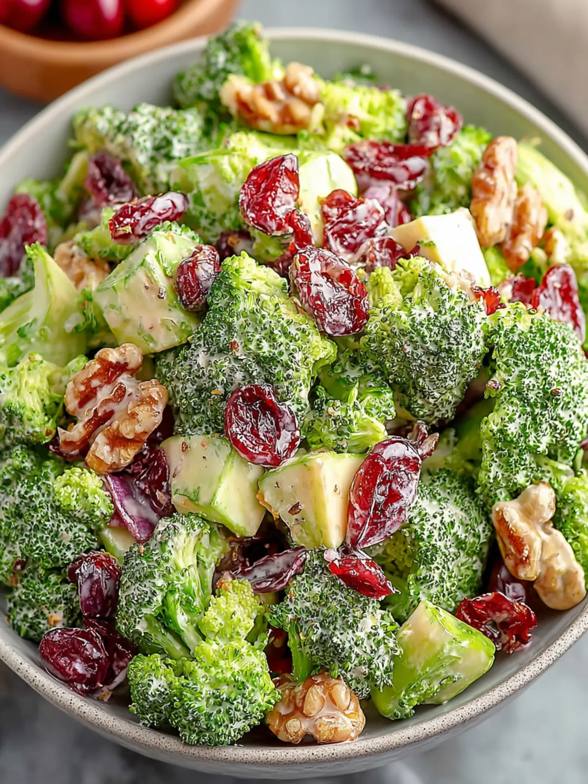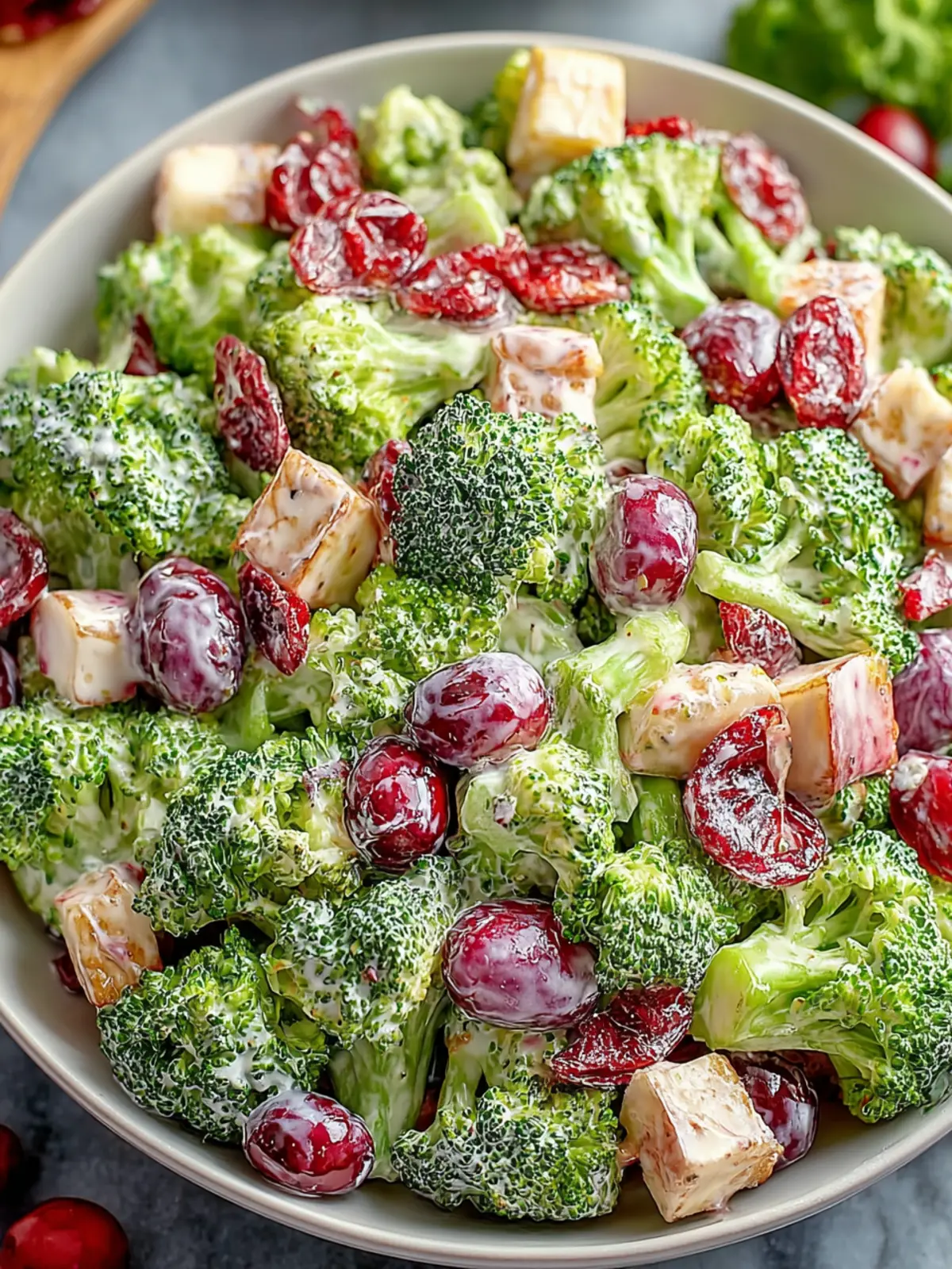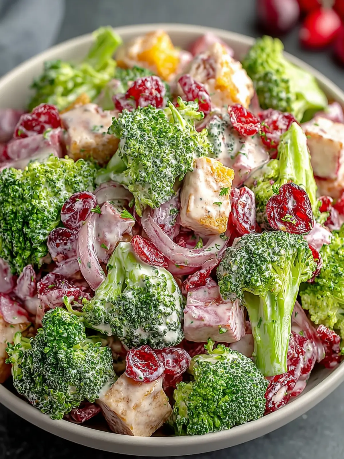 This salad is a fantastic way to incorporate nutrient-rich ingredients into your diet without sacrificing flavor. Broccoli is known for its health benefits, including being a powerhouse of vitamins and minerals. Combined with sweet-tart cranberries, this salad not only tastes fantastic, but it also provides a delightful crunch that’s perfect for any occasion.