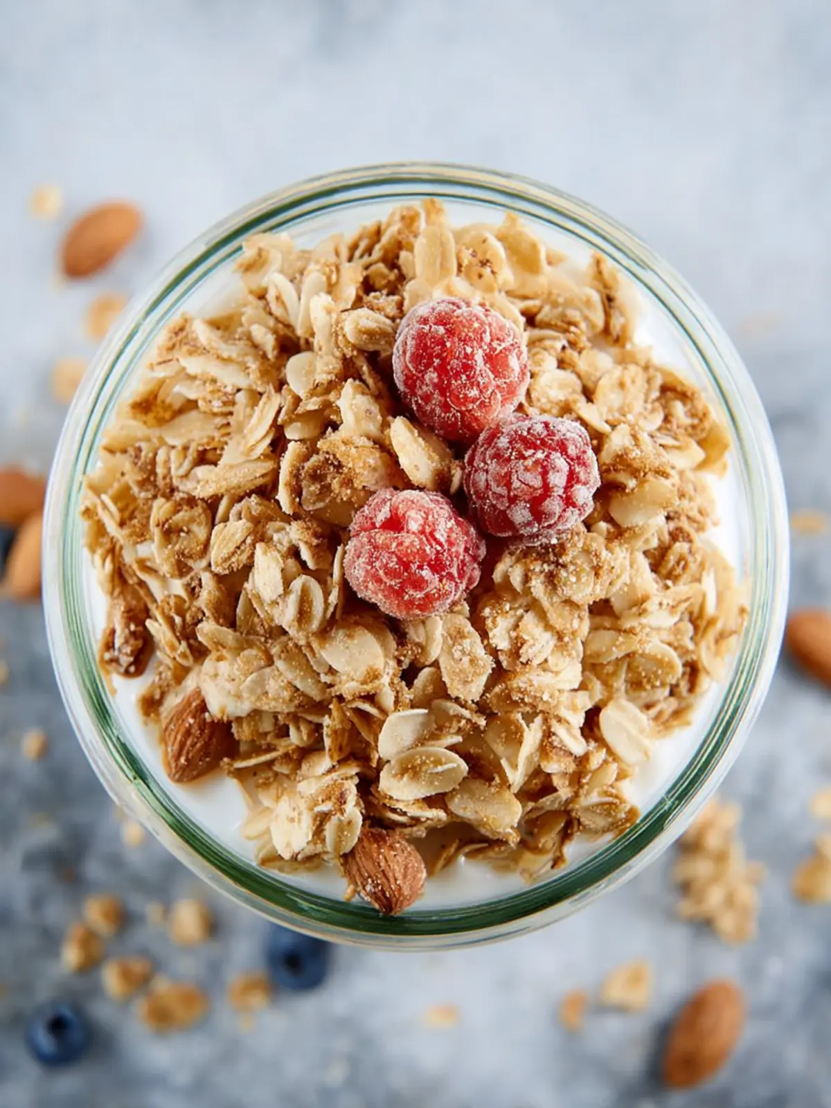 Health Benefits: With nutrient-dense ingredients like oats, nuts, and seeds, this granola provides a great source of fiber and protein. Studies show that a high-fiber breakfast can help with satiety and energy levels throughout your busy day.