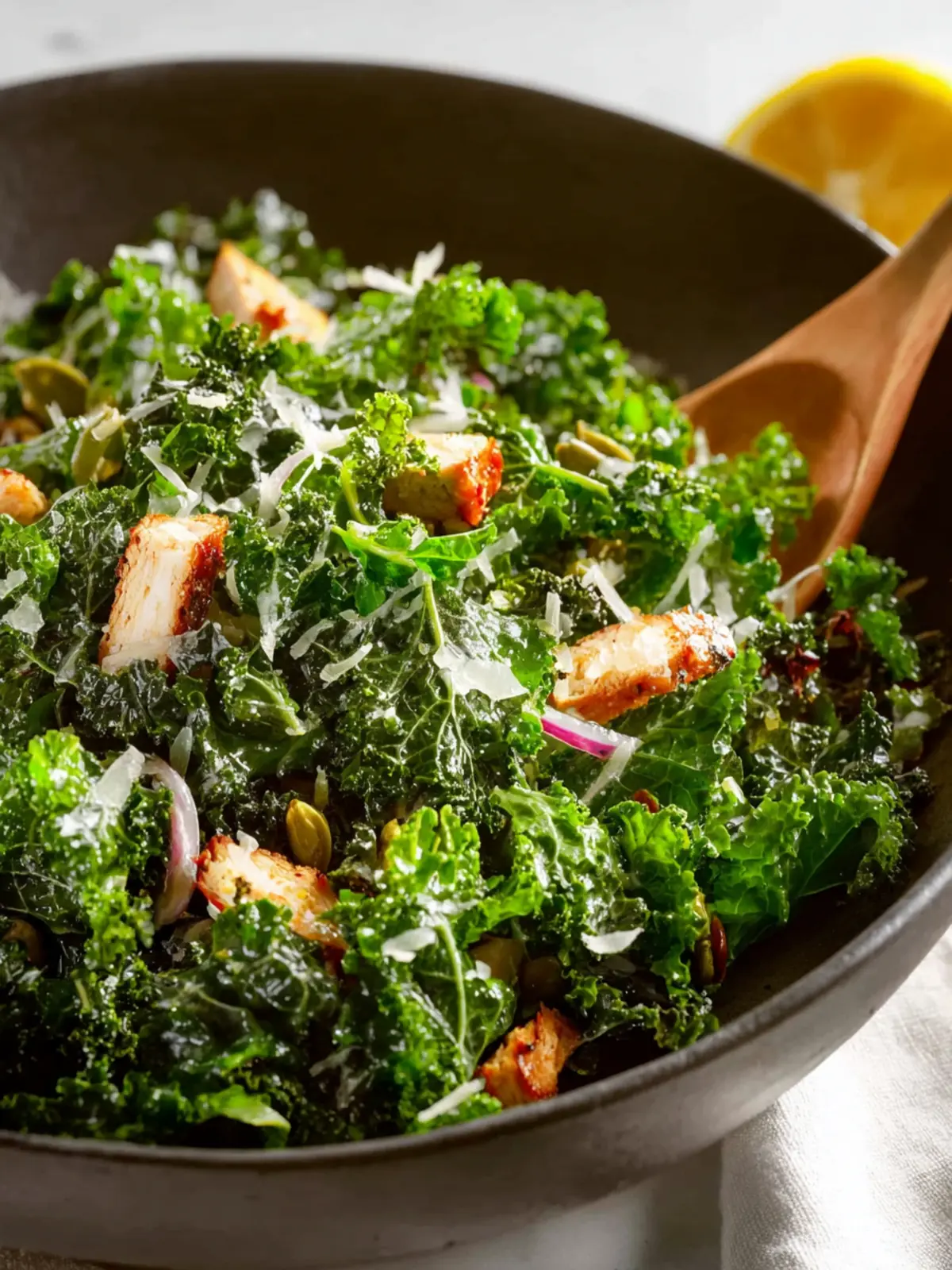 This delicious kale salad is packed with flavor and nutrients, featuring a zesty lemon dressing.