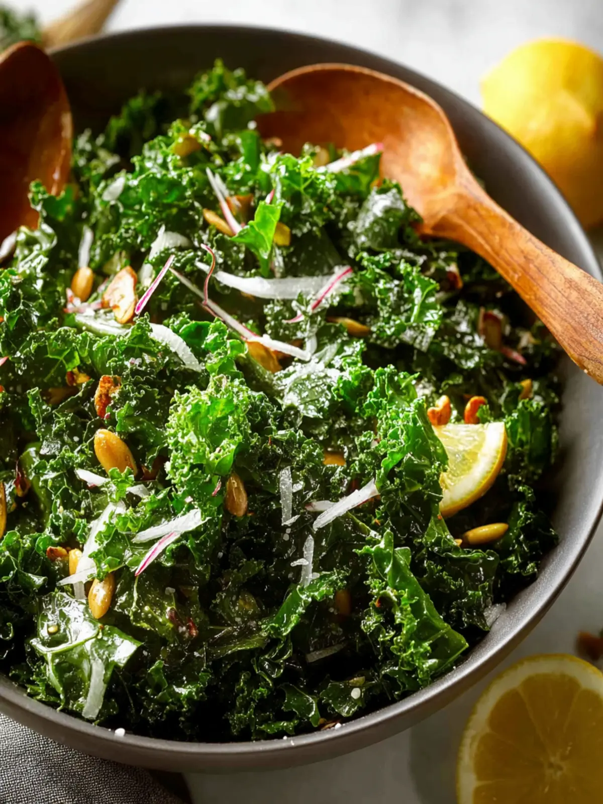 • Deliciously Satisfying: The combination of the crunchy kale, the bright lemon, and any additional toppings you may add, like nuts or berries, provides a delightful texture that makes this salad more than just a side dish.
