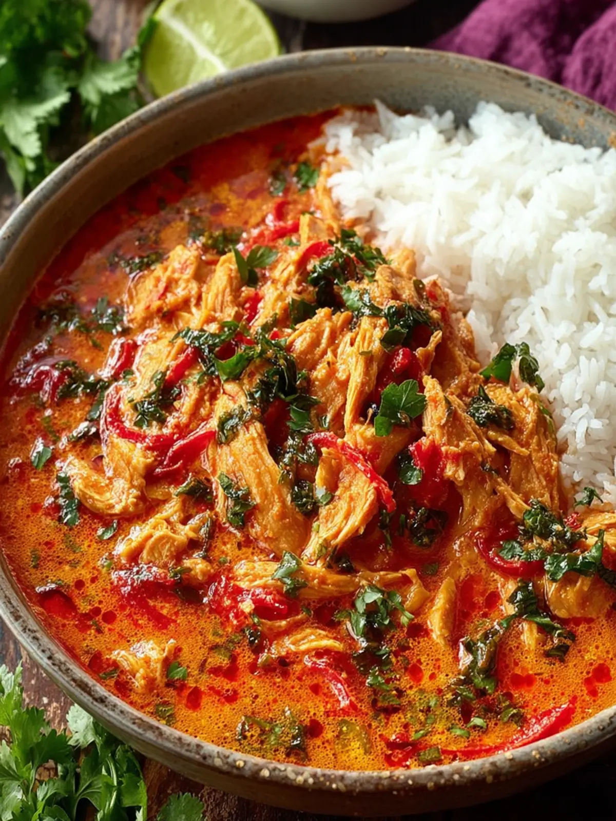 A flavorful Thai red curry chicken dish made with coconut milk, spices, and fresh vegetables.