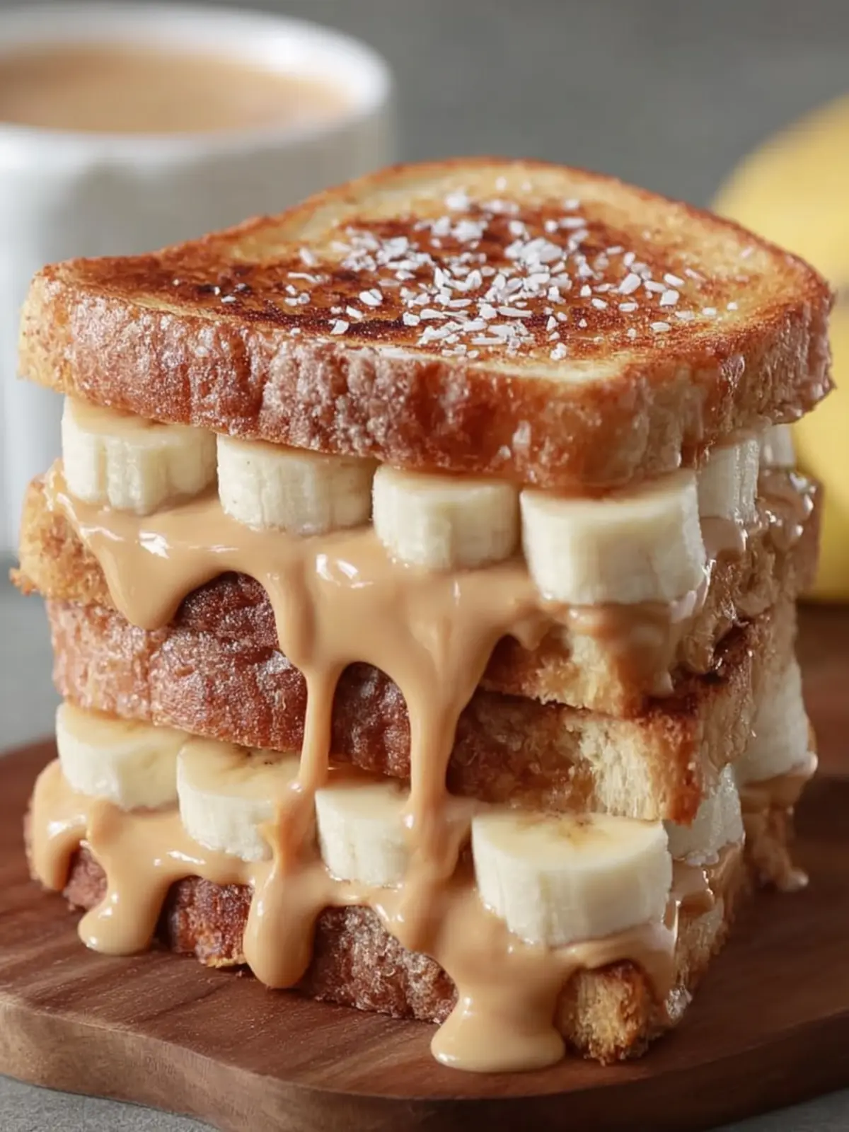 A delicious and easy sandwich that combines peanut butter and banana, grilled to perfection.