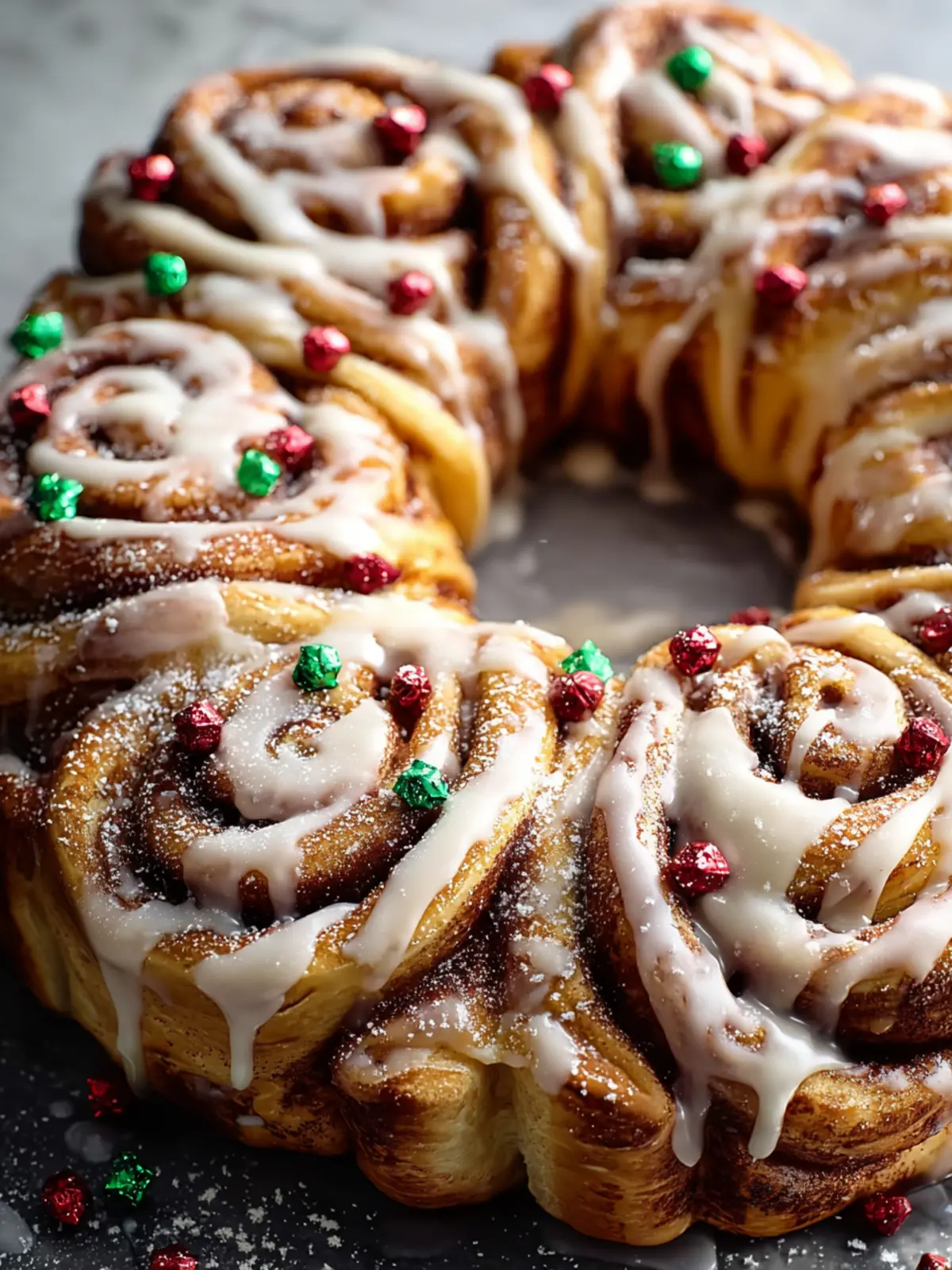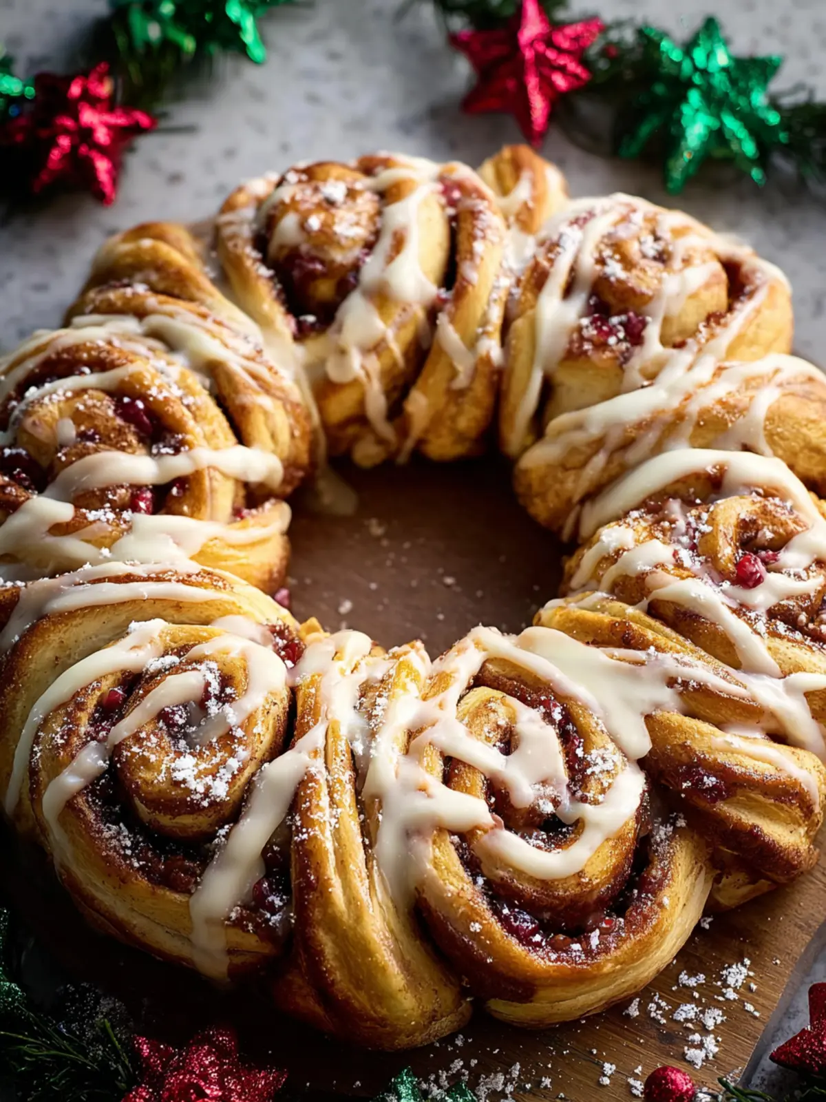Decoration: Once baked and cooled slightly, drizzle cream cheese frosting generously over the wreath. Adding festive sprinkles or nuts can elevate your presentation and flavor. Enjoy the compliments as your loved ones indulge in this delicious treat!