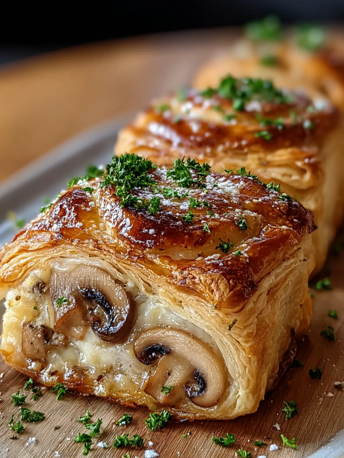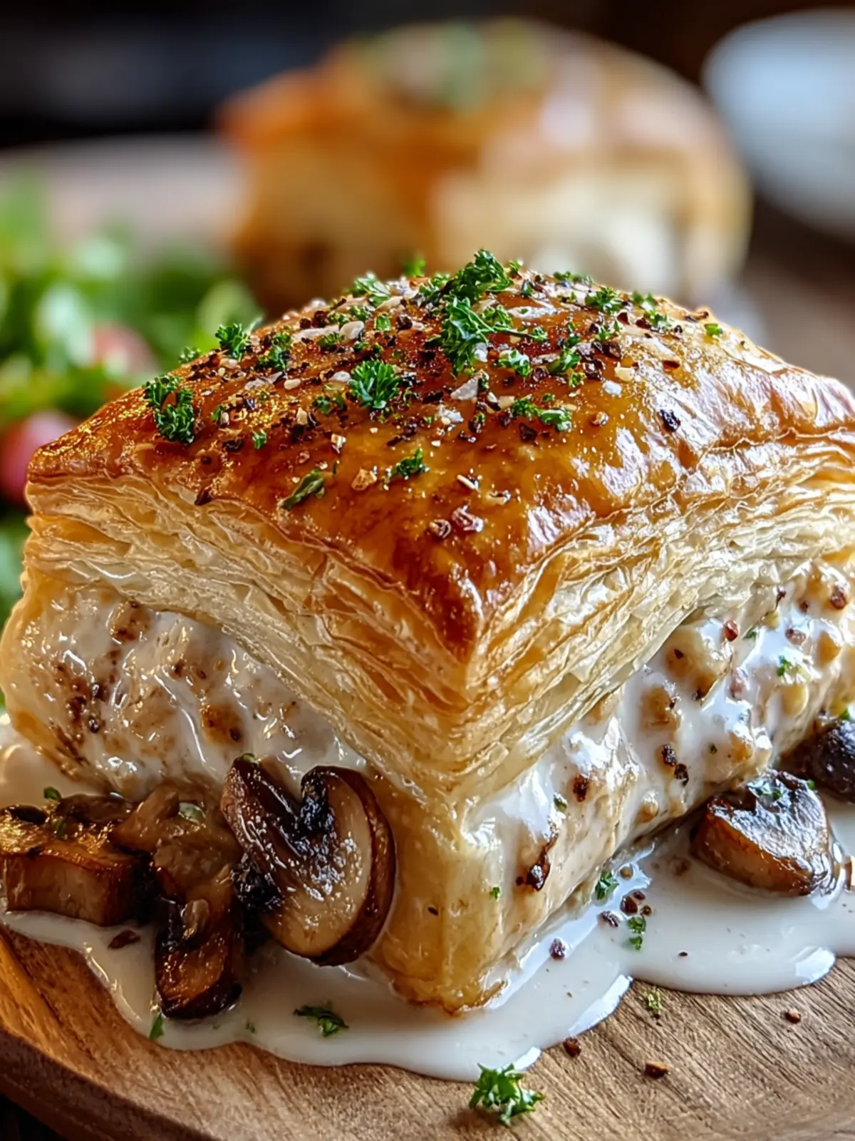 Enjoy every bite of this wonderfully balanced dish that combines savory chicken and earthy mushrooms wrapped in flaky pastry!