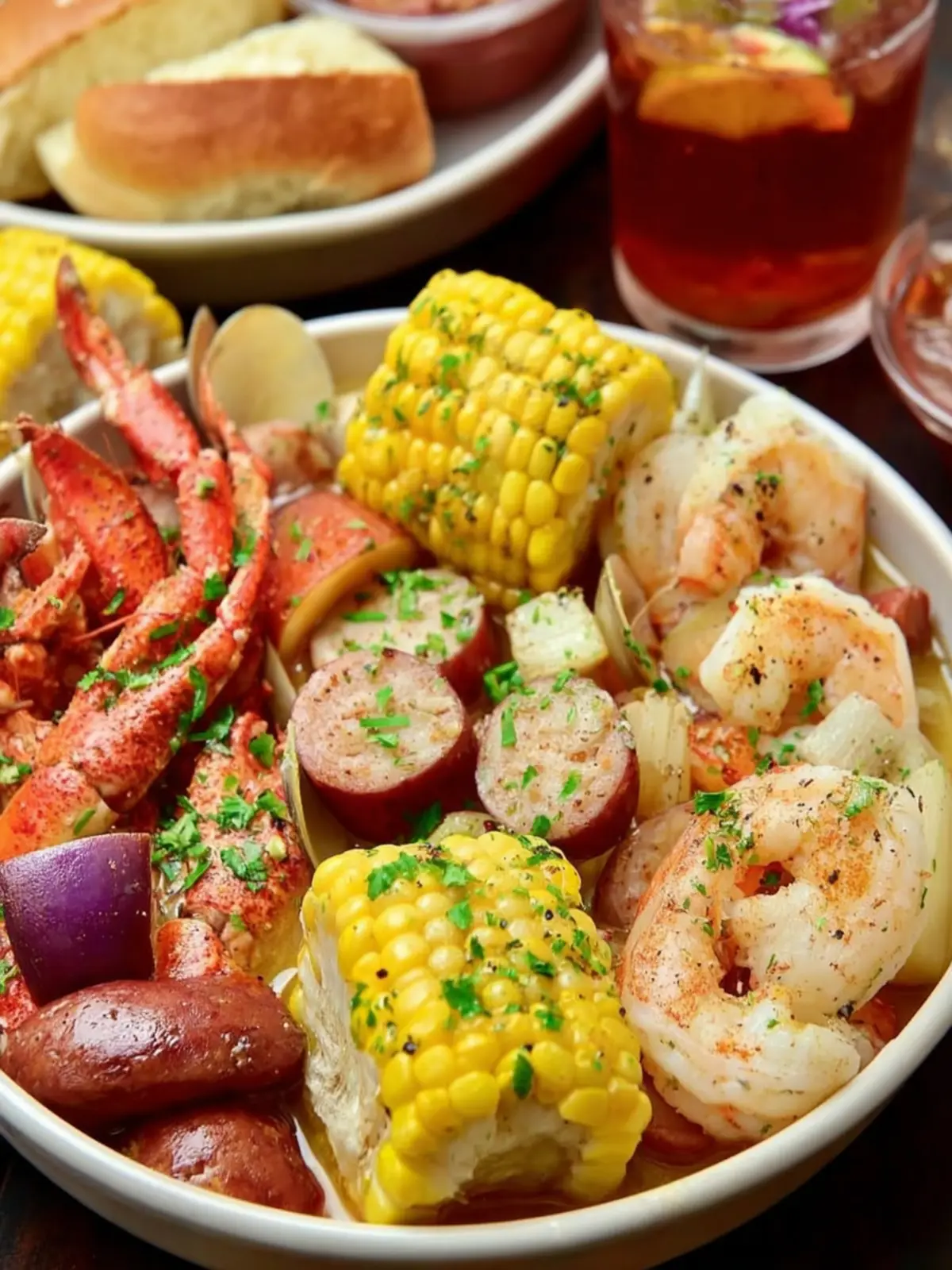 This dish is brimming with vibrant flavors—succulent shrimp, spicy sausage, and tender corn, all complemented by the earthy notes of Old Bay seasoning. It’s truly the ultimate Southern comfort food! Each ingredient plays a crucial role in creating a symphony of taste that evokes coastal charm. As the meal is served family-style, it’s impossible not to feel the warmth of Southern hospitality.