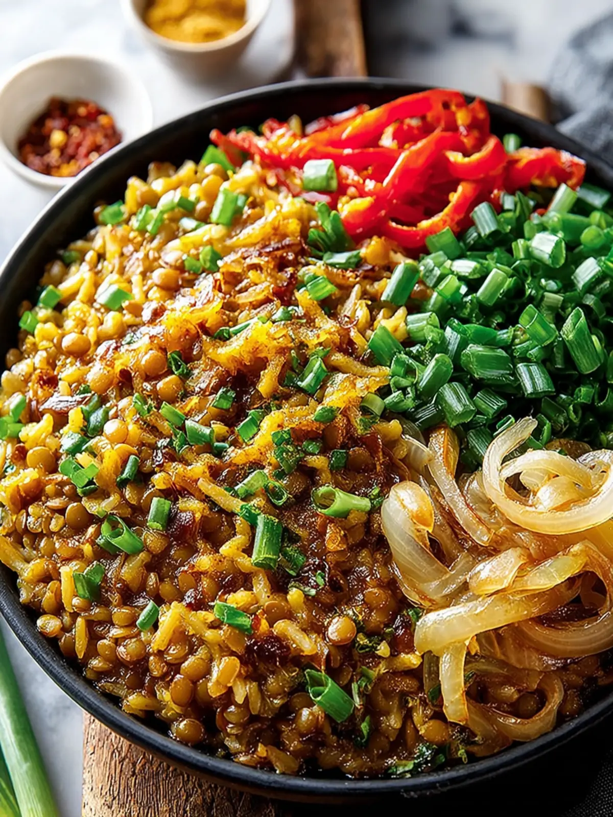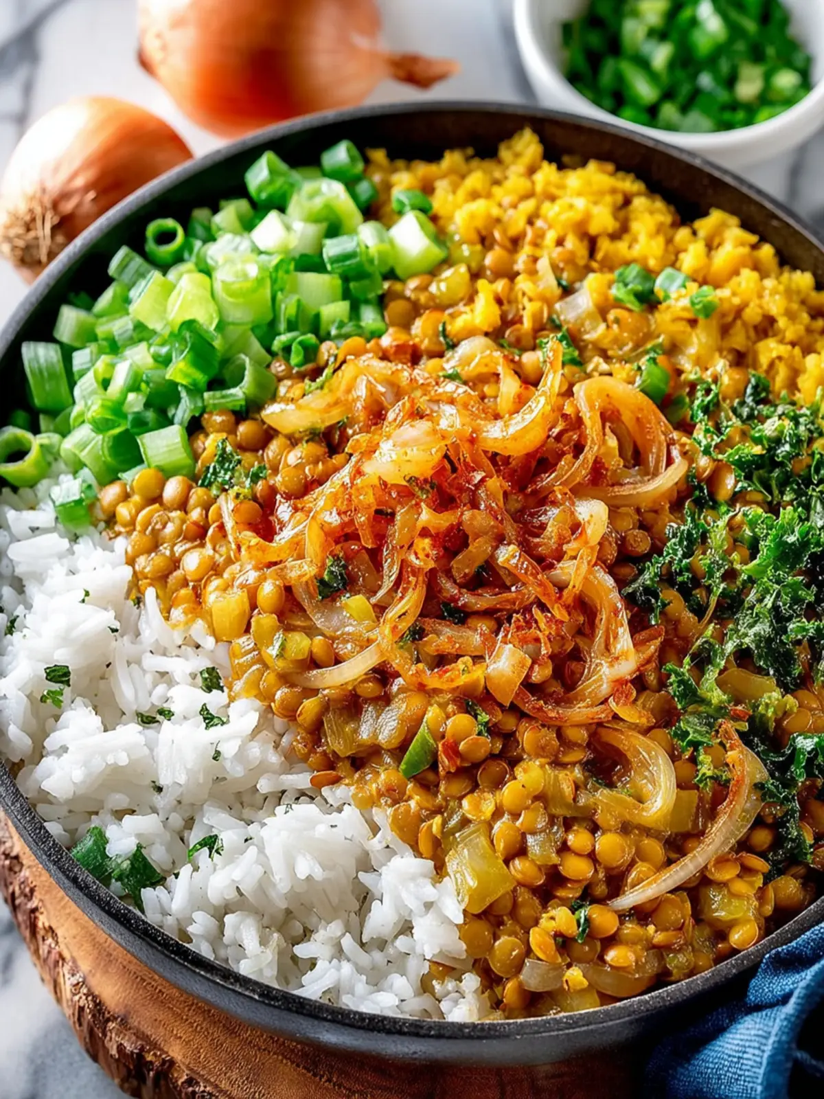 What makes this Mujadara lentils and rice recipe so special is its simplicity paired with depth of flavor. The dish features: