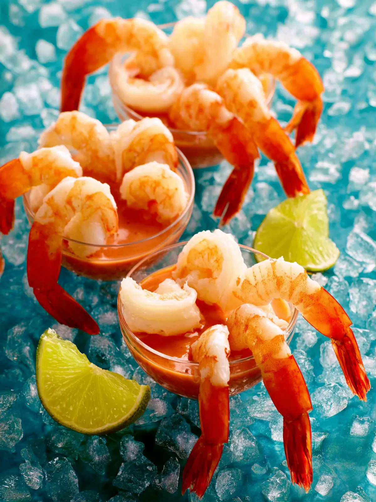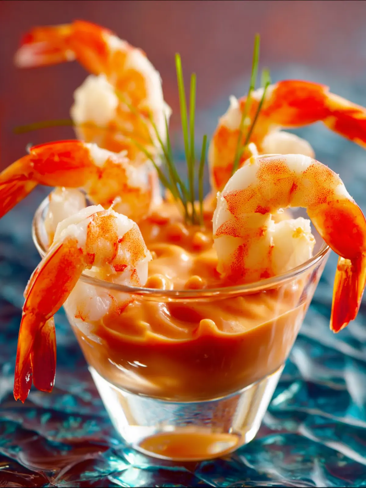 A refreshing shrimp cocktail with a zesty dipping sauce.