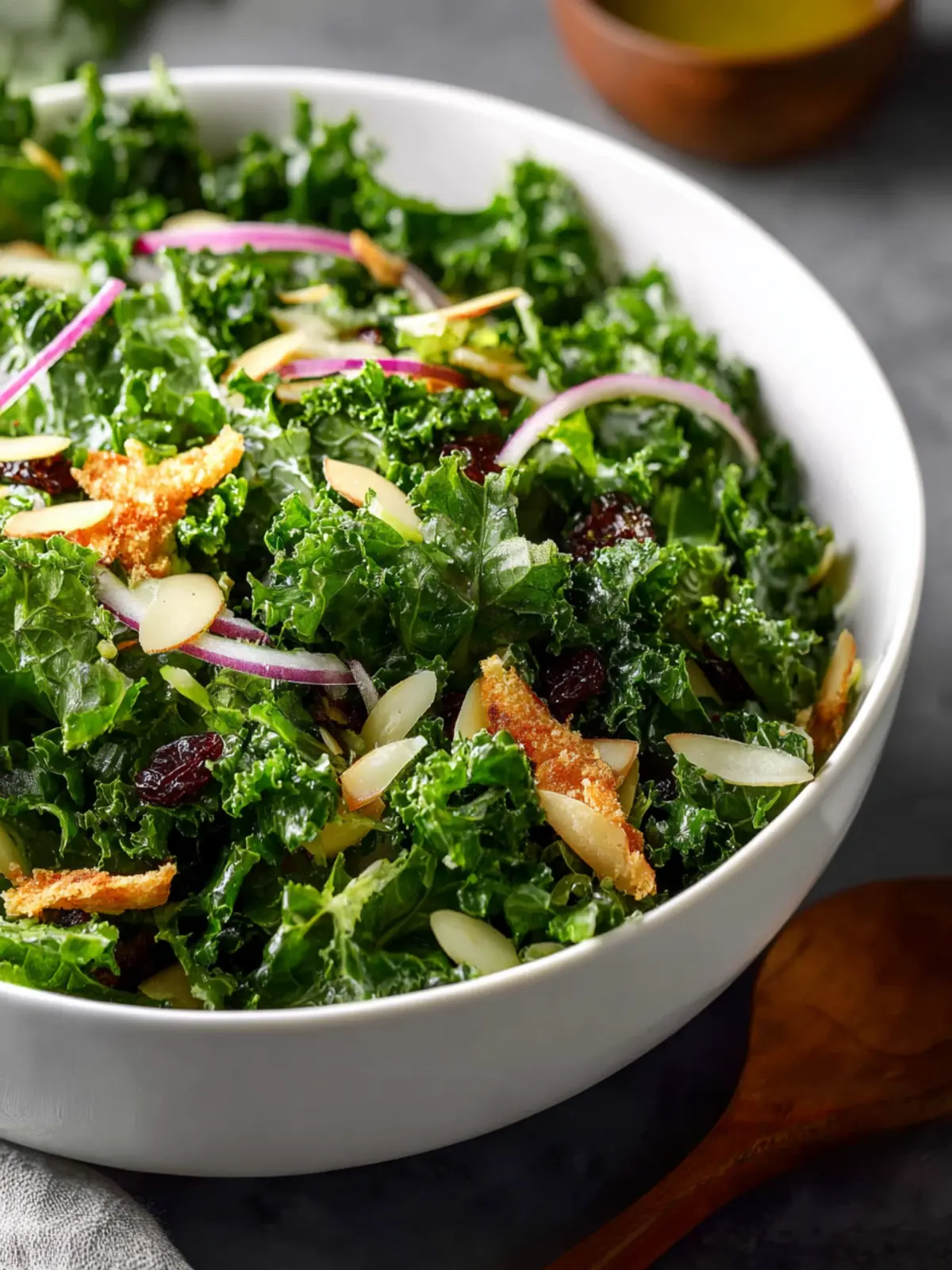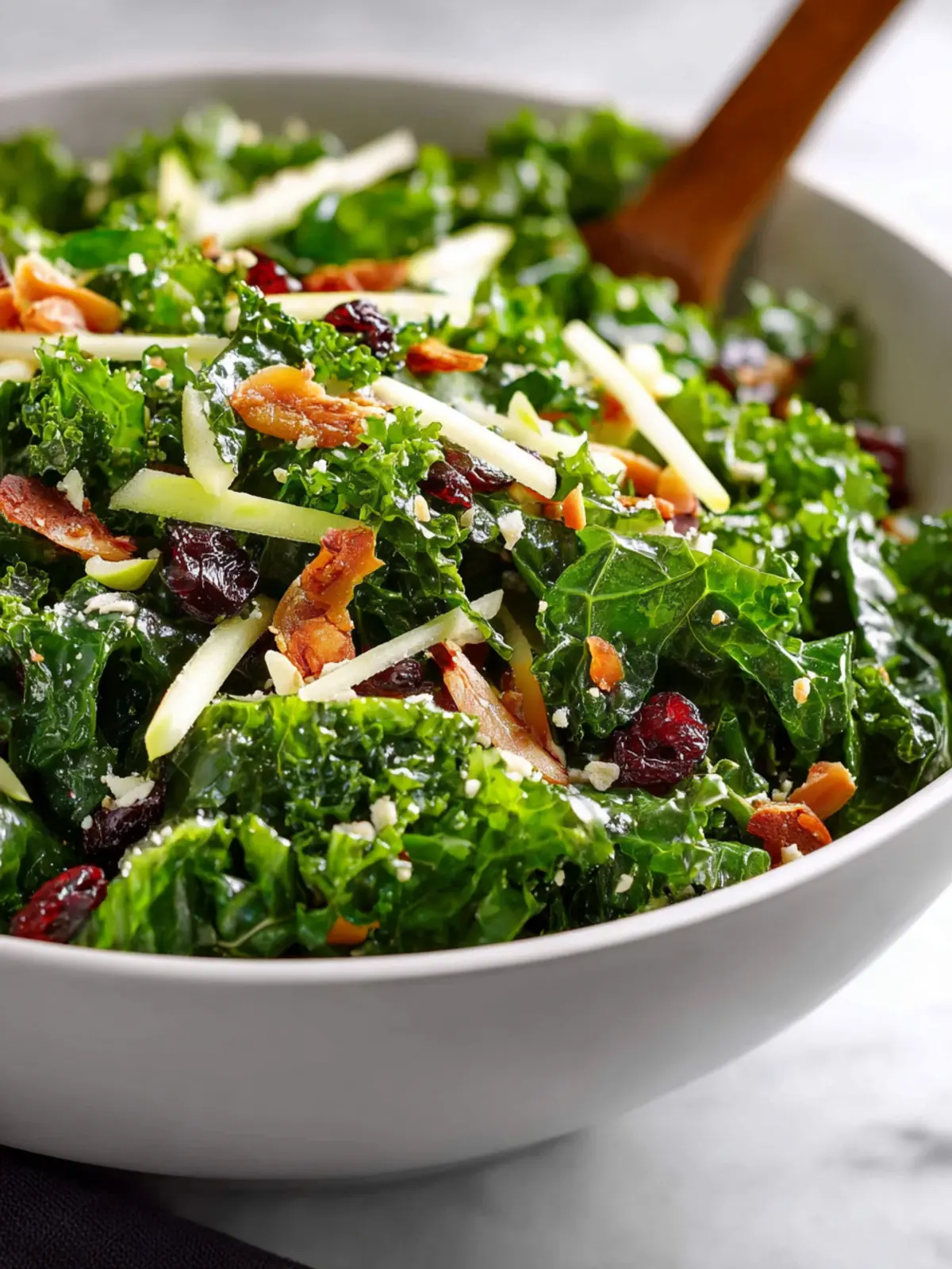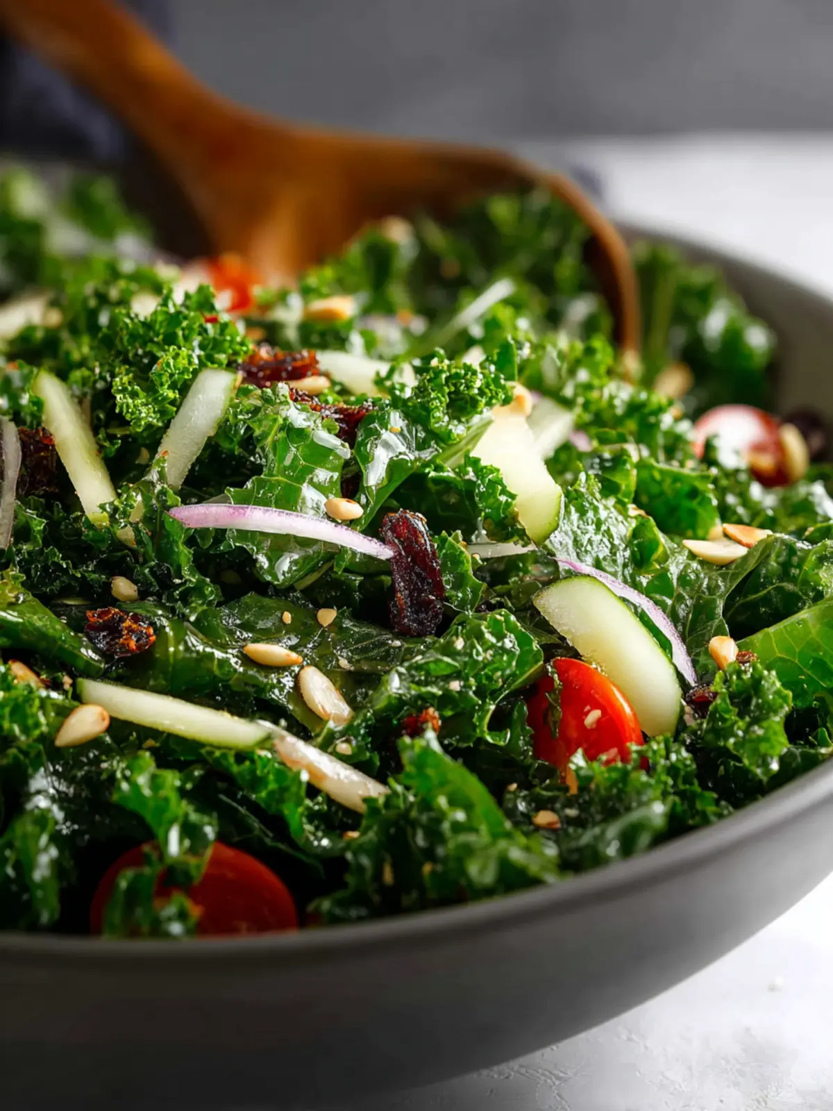 • Kale: Dark green and nutrient-rich, kale is the star of this salad. Its slightly bitter flavor pairs beautifully with the sweetness of the other ingredients. Massage it lightly before serving to make it tender and easier to digest.