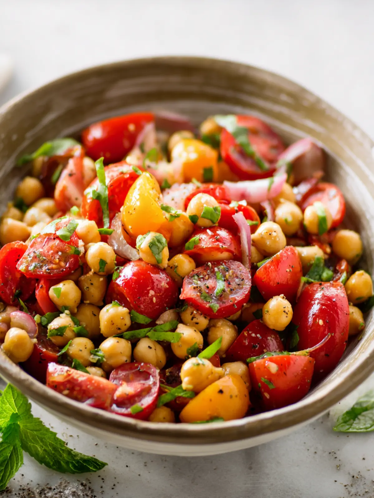 - Herbs: Fresh herbs can transform your tomato chickpea salad. Basil and parsley are classics, but don’t hesitate to experiment with mint or even cilantro for a unique twist. Chop them finely to distribute their flavors evenly.